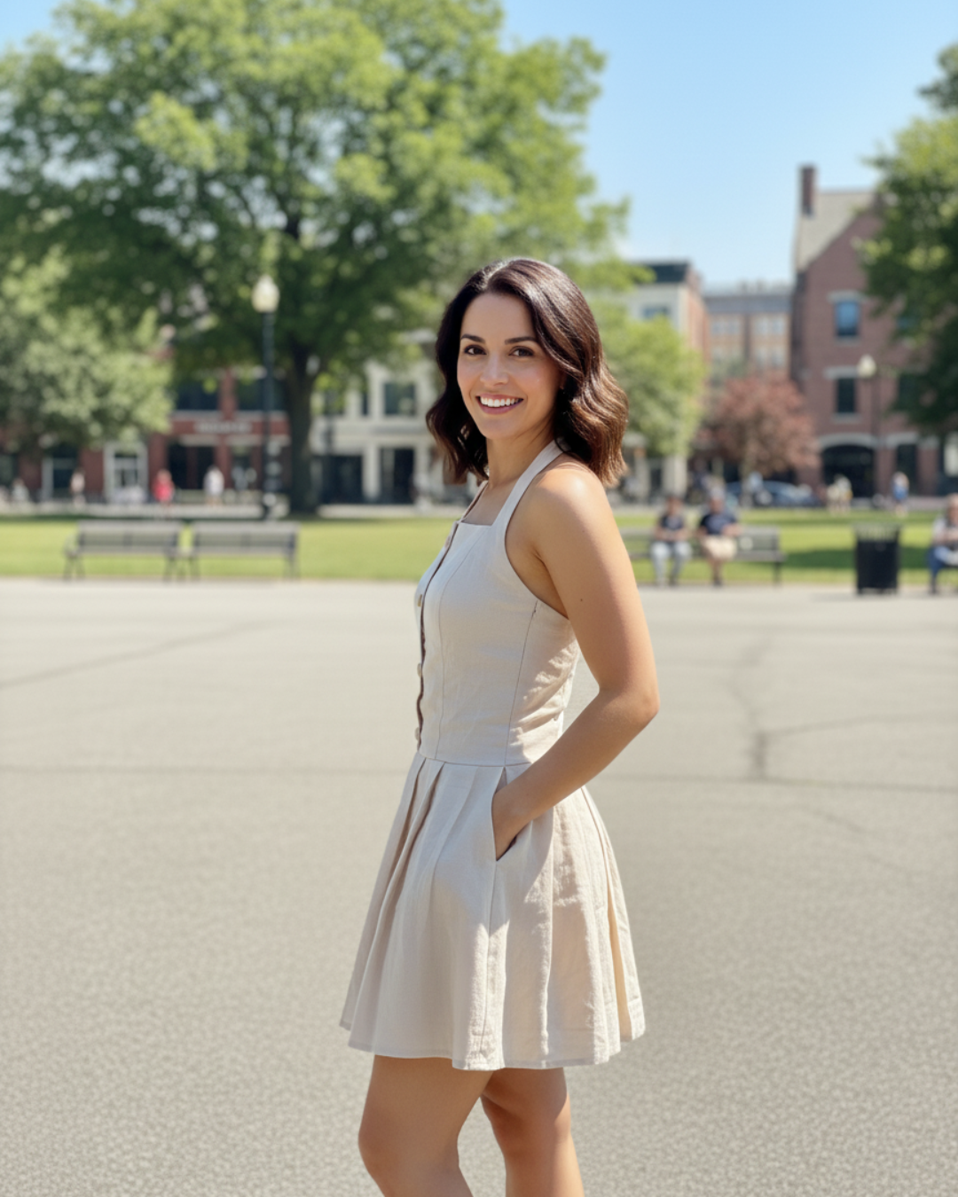Detalhes | Botões frontais e saia ampla |